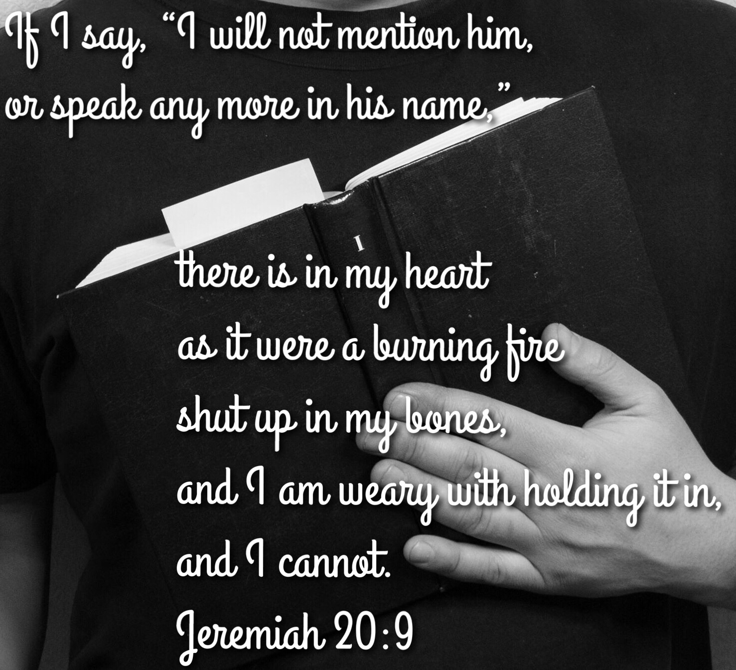 I’m taking some of the weight off myself. This blog isn’t about making much of me. It’s about making much of Christ. I’m going to find some of you wise women out there; who have fire in your bones and need a release. Women who desire to share and make much of Christ.