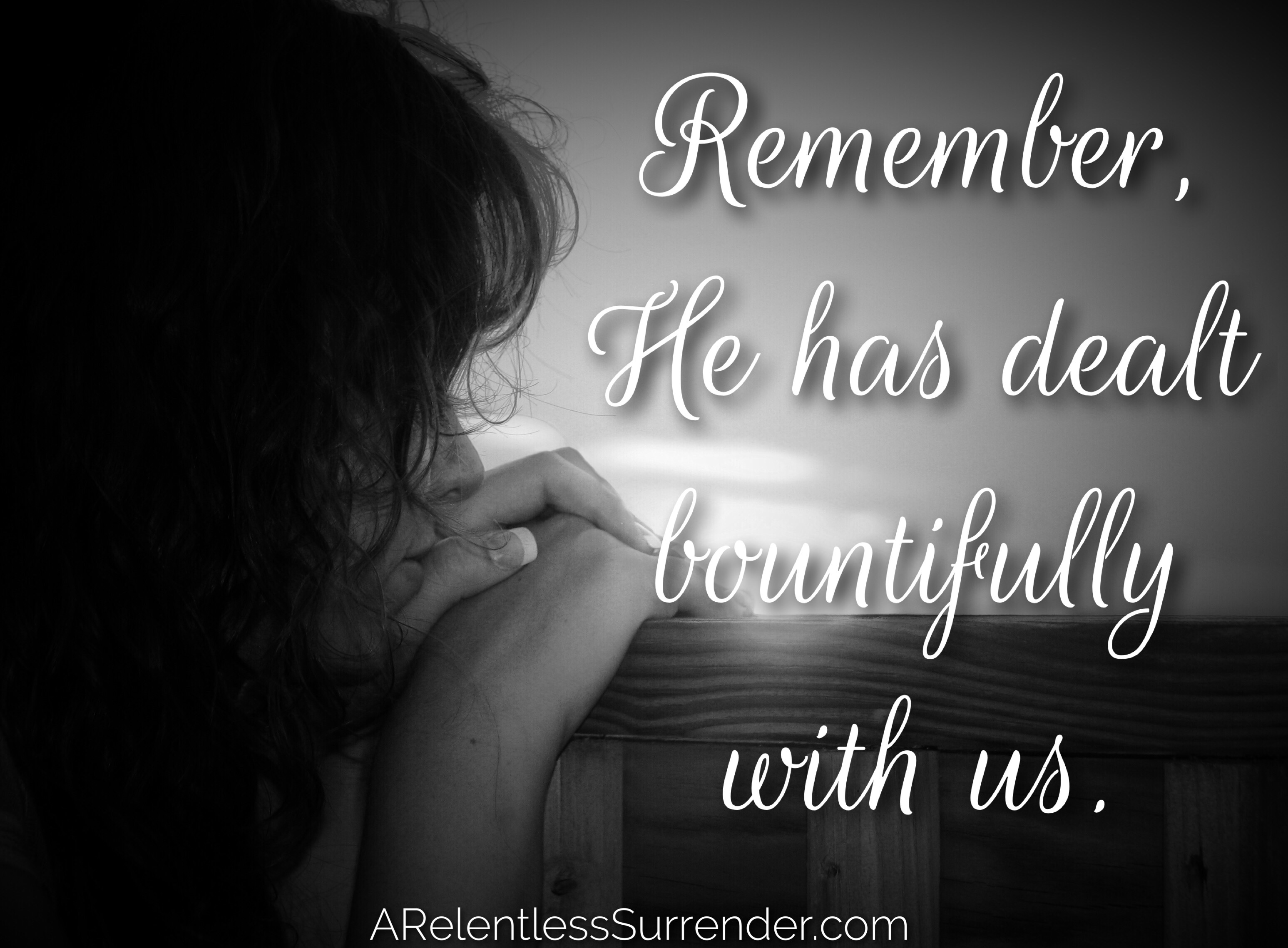 It was easy to find great solace in reading this Psalm, because the great King David felt the way that I do and have in the past. David sets an excellent example and reminder that it is okay to ask of our God “How Long?”, but we also need to remember that He is the great provider, and we need to be thankful for everything that He has already done for us. Remember, He has dealt bountifully with us. That is quite a job on most days.image